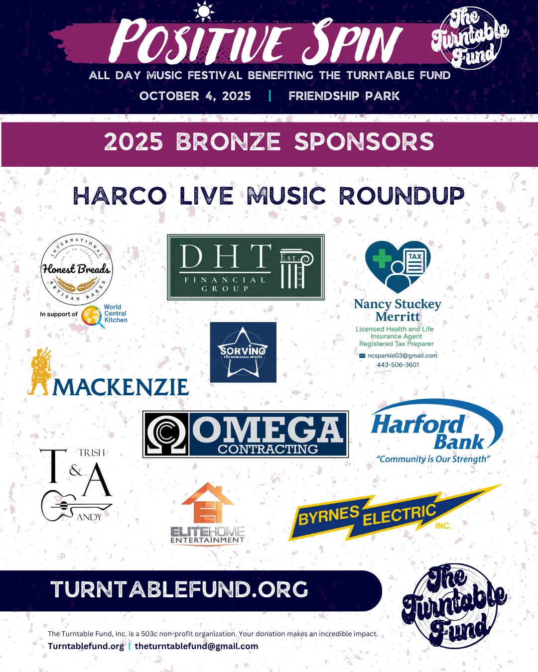 Your donation to the Turntable Fund provides temporary financial relief to professional Harford County musicians who cannot work due to sickness, injury, or other catastrophic circumstances leaving them unable to perform.
